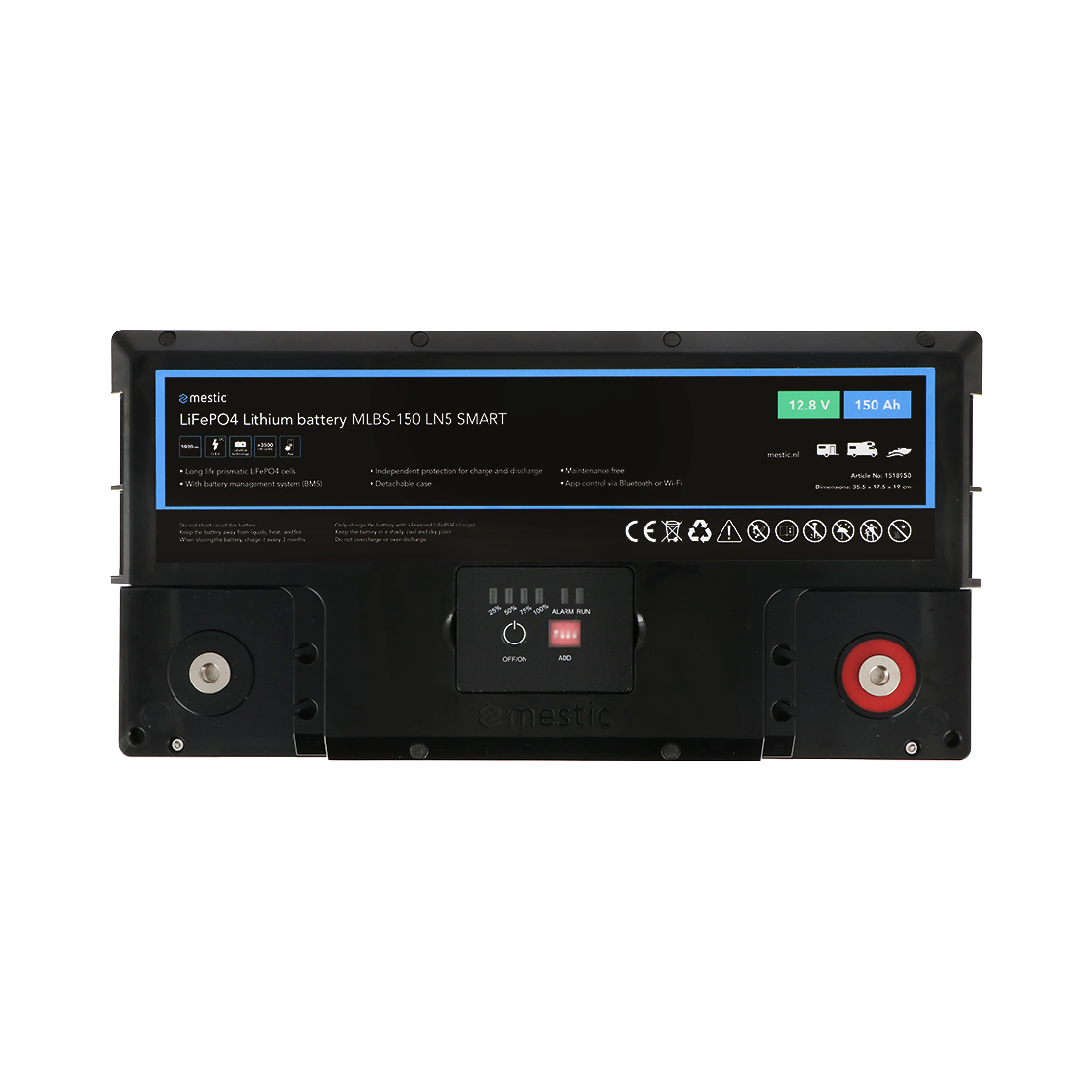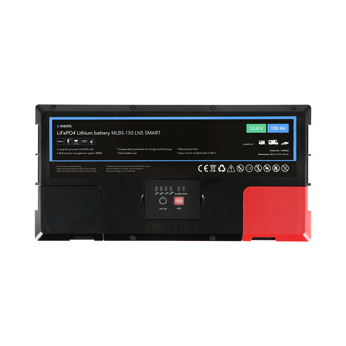 La MLBS-150 LN5 smart es una batería potente y sin mantenimiento de 150 Ah. Para que disfrutes de energía fiable durante mucho tiempo. Controle la batería a través de la aplicación Mestic con Bluetooth o WiFi. Adecuada para su uso debajo del asiento en Fiat Ducato, Peugeot Boxer, Citroën Jumper y otros modelos de vehículos.