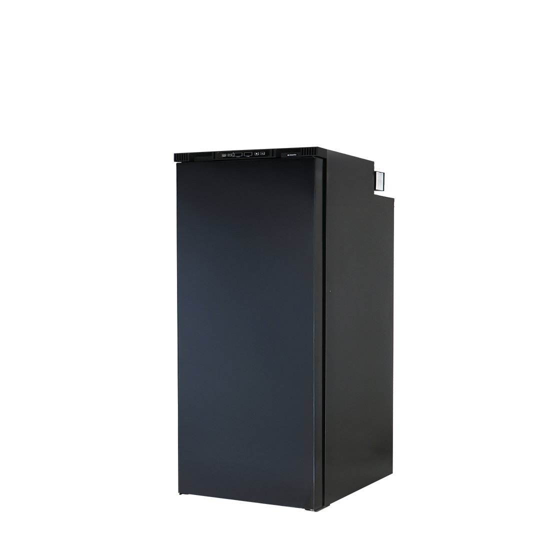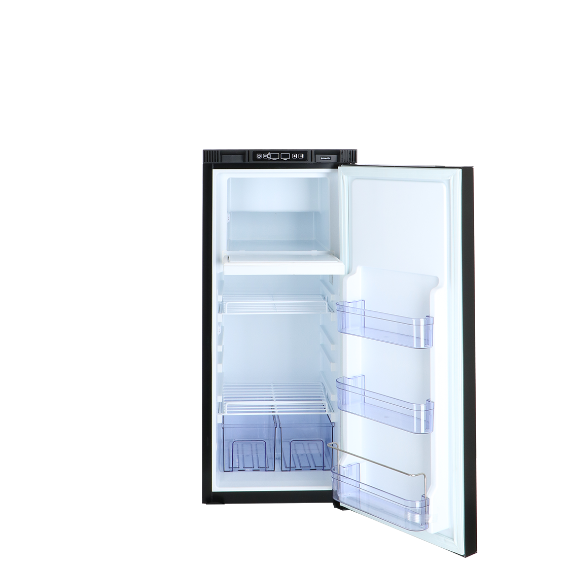 El frigorífico de compresor extraplano es ideal para acampar y se puede instalar fácilmente en su autocaravana o caravana. La puerta tiene un tirador integrado y se puede montar para abrir hacia la izquierda o hacia la derecha, según se desee. El robusto cierre de la puerta garantiza que esta no se abra durante la conducción. Además, el frigorífico utiliza el refrigerante ecológico R600a, que enfría de forma eficiente con un bajo consumo de energía.